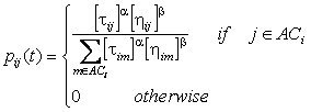 Move the k-th ant to j {this instruction creates the new values bj (t+1)}