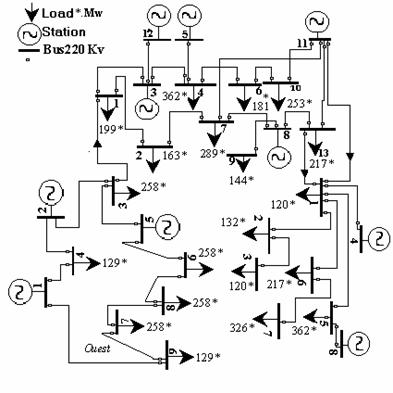 The implantation is chosen on real network Algerian national network, made by ten (10) generating stations and twenty (20) consumer nods as sketched in fig. 2, the distribution system with ten sources and several switching devices. Swi. At the initial state, all the switches are closed and the system is operating in loop configuration.